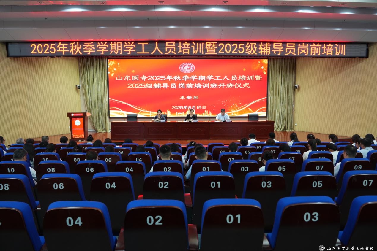 8月19日至22日,山东医学高等专科学校举办2025年秋季学期学工人员培训暨2025级辅导员岗前培训班。学校党委委员、副校长孙运粉出席开班式并讲话。全体学工人员参加培训。