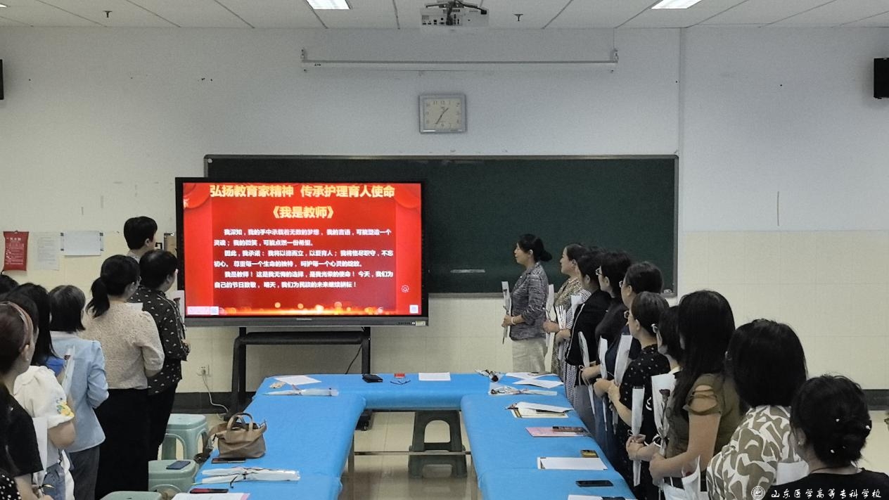 护理系(济南)全体教师肃立齐诵《我是教师》,用铿锵誓言铸牢教育初心,将教育家精神内化于心、外化于行。