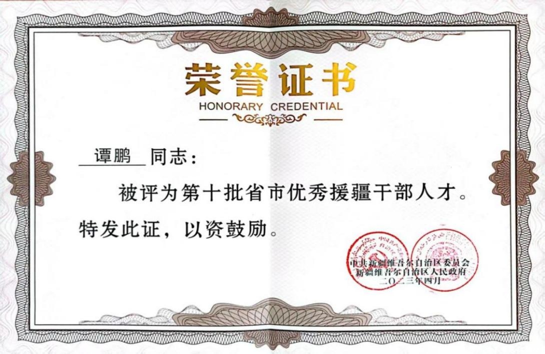 2020年8月,谭鹏老师积极响应学校号召,义无反顾到四类边远艰苦地区新疆喀什进行支教工作,开启了我校援疆支教的新篇章。在疆期间,除承担《医患沟通》、《内科护理》、《小学语文》等课程的授课任务外,他积极开展专业建设帮扶工作,组织两地教师交流,开展专题讲座,介绍山东职业教育先进经验;结对帮扶本地教师,提升教科研水平;带领教研室教师成功申报自治区实训基地建设项目;主持制定了临床专业群建设方案、高职临床医学扩招人才培养方案、莎车分院临床医学实训室规划方案、学院虚拟仿真实训基地建设方案等;组建了《诊断学》课程思政团队,开发课程思政资源;组织开展临床医学专业认知教育系列活动和临床技能竞赛;参与招生考试、招生宣传、专业调研、下乡扶贫等工作。