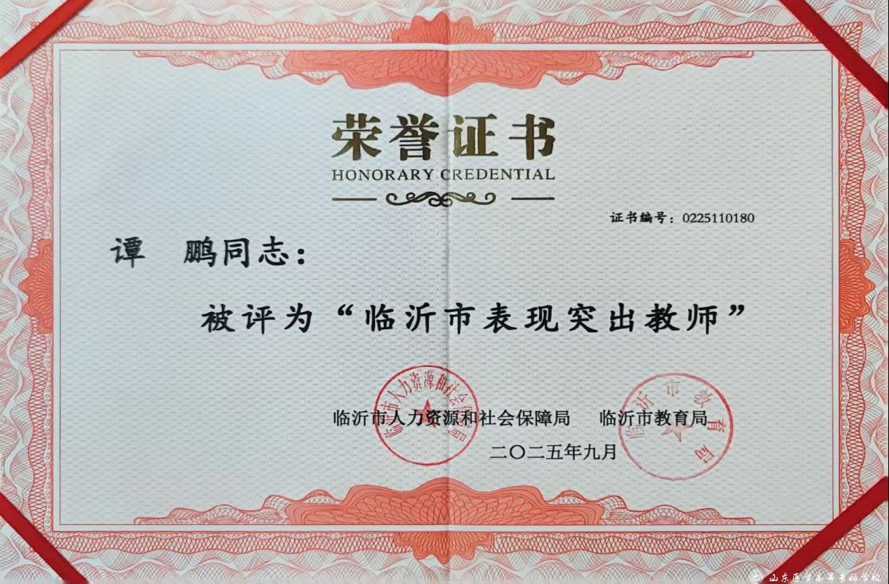 (临床医学系教师谭鹏被评为“临沂市表现突出教师”)