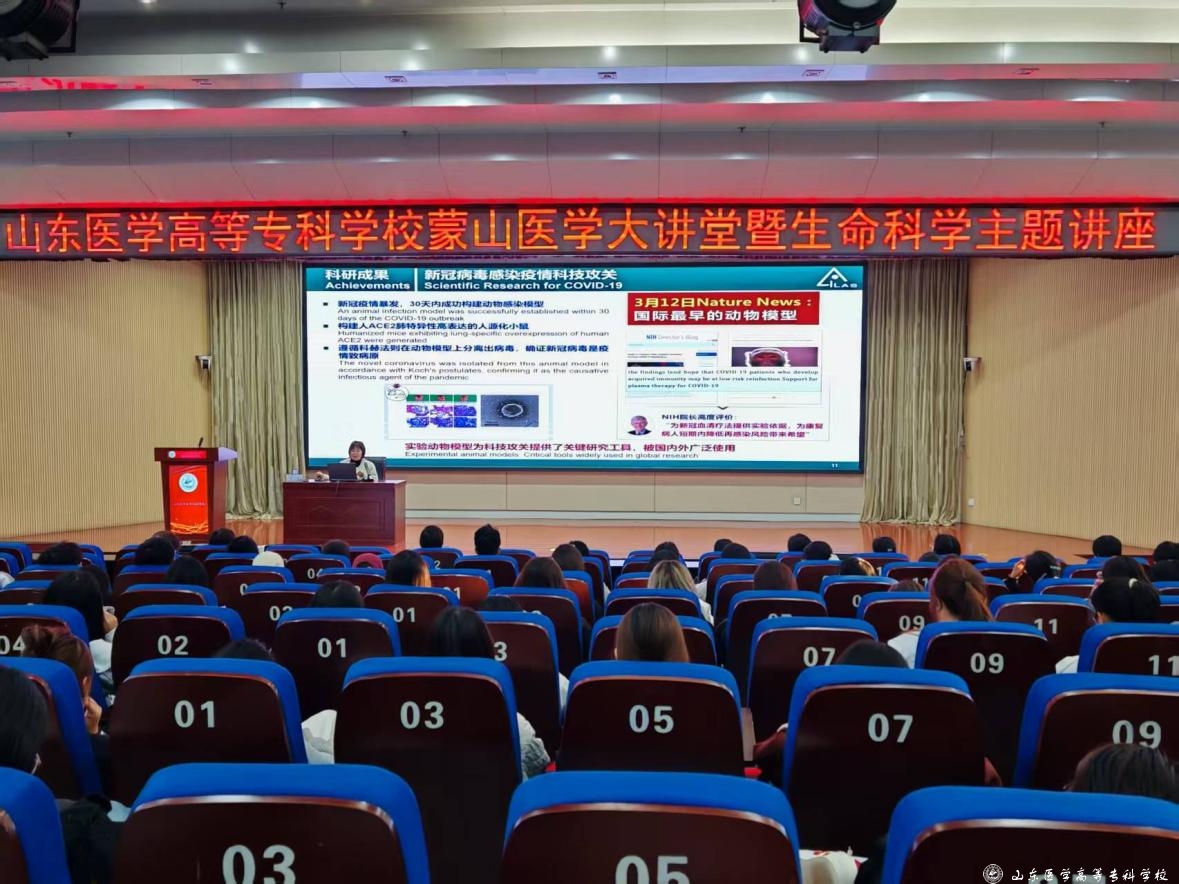近日,山东医学高等专科学校举办第六期“蒙山医学大讲堂”,邀请中国医学科学院医学实验动物研究所所长助理、科技发展处处长高苒研究员作专题报告。