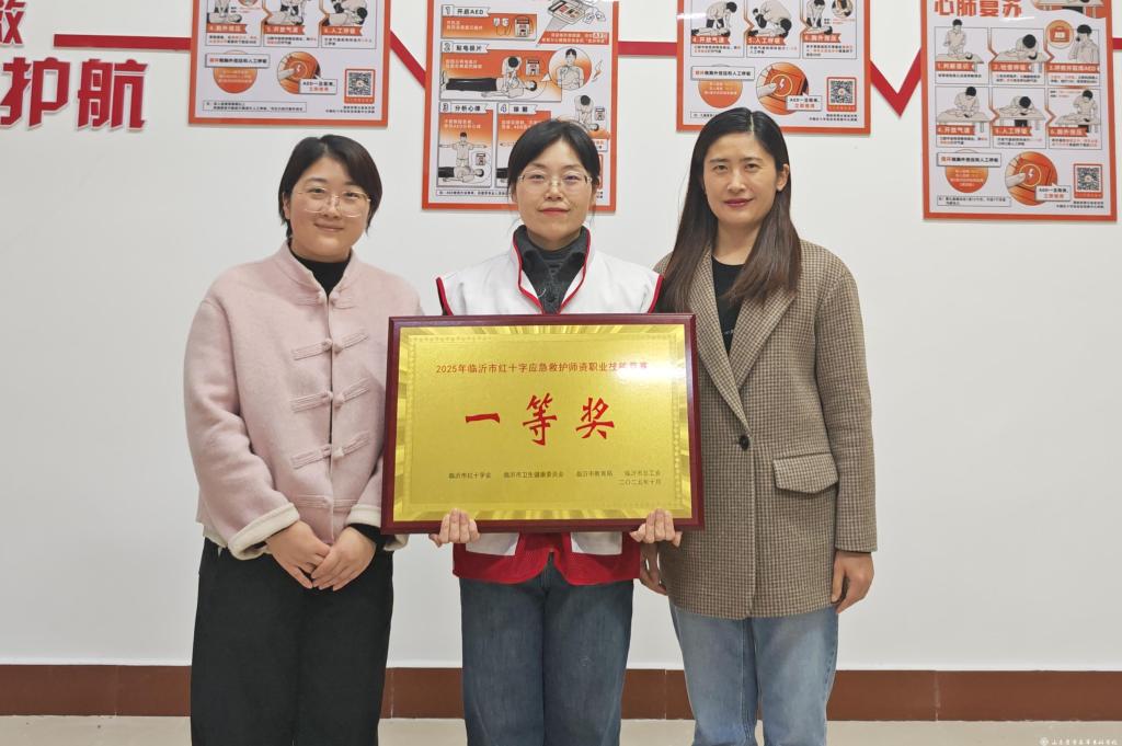 近日,山东医学高等专科学校代表队在2025年临沂市红十字应急救护师资职业技能竞赛中荣获一等奖。