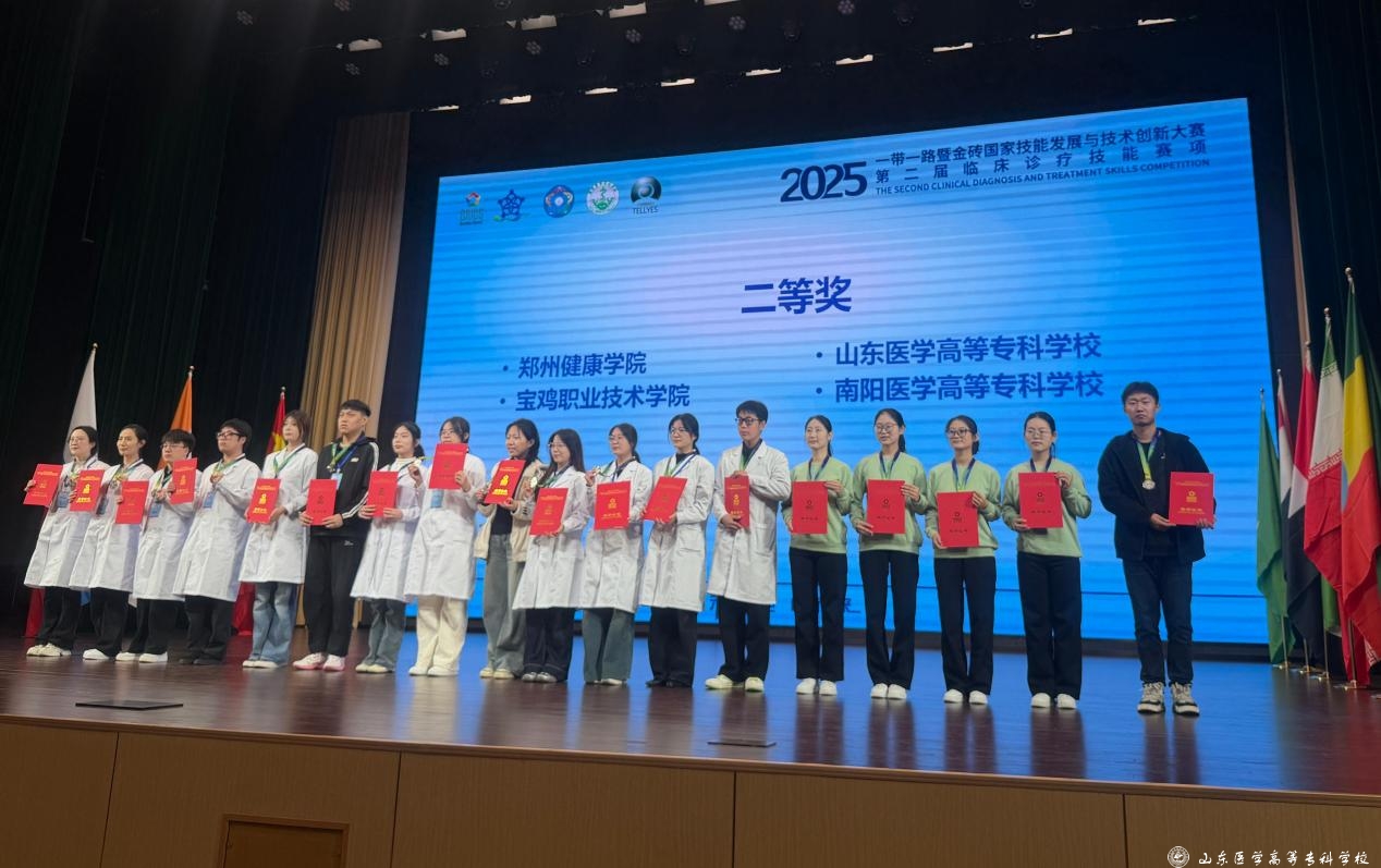 近日,山东医学高等专科学校师生在2025一带一路暨金砖国家技能发展与技术创新大赛第二届临床诊疗技能赛项中荣获二等奖。