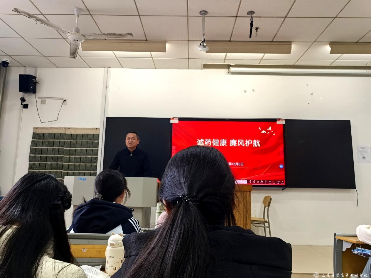 学校党委委员、纪委书记卢钢为2025级药学(生物药)班讲授“诚药健康 廉风护航——做新时代廉洁药学人”的思政课。他结合自身工作经历,深入剖析药品研发、生产、销售等环节可能出现的违法违纪行为及其对人民身体健康的严重危害,谆谆告诫同学们坚守廉洁底线,践行“大医精诚,自强不息”的校训,争做新时代廉洁自律、担当作为的药学工作者,为人民健康保驾护航。