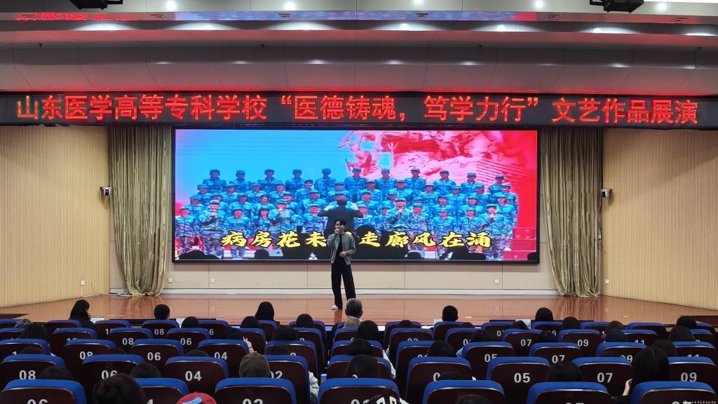 4月9日,山东医学高等专科学校举办“医德铸魂笃学力行”文艺作品展演活动。