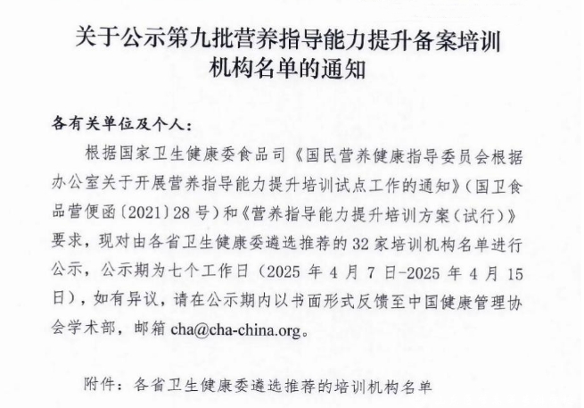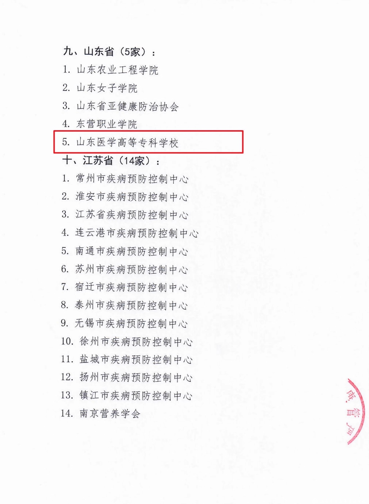近日,中国健康管理协会公布了第九批营养指导能力提升备案培训机构名单,山东医学高等专科学校成功获批。